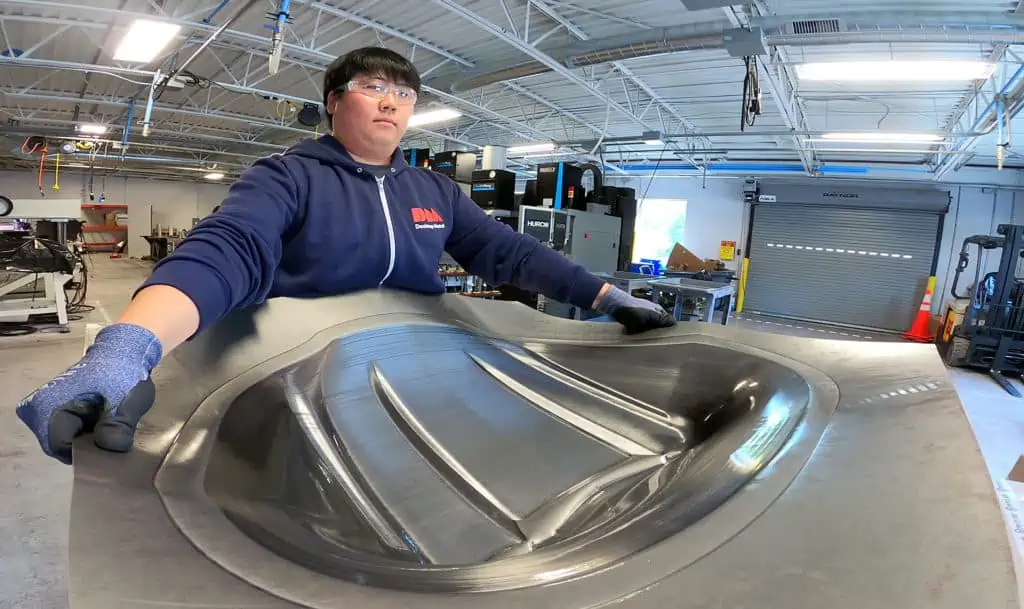 Traditional sheet metal forming is a capital- and time-intensive process that requires an expensive stamping press, which often costs about $1 million, as well as tools and dies that take months to produce.